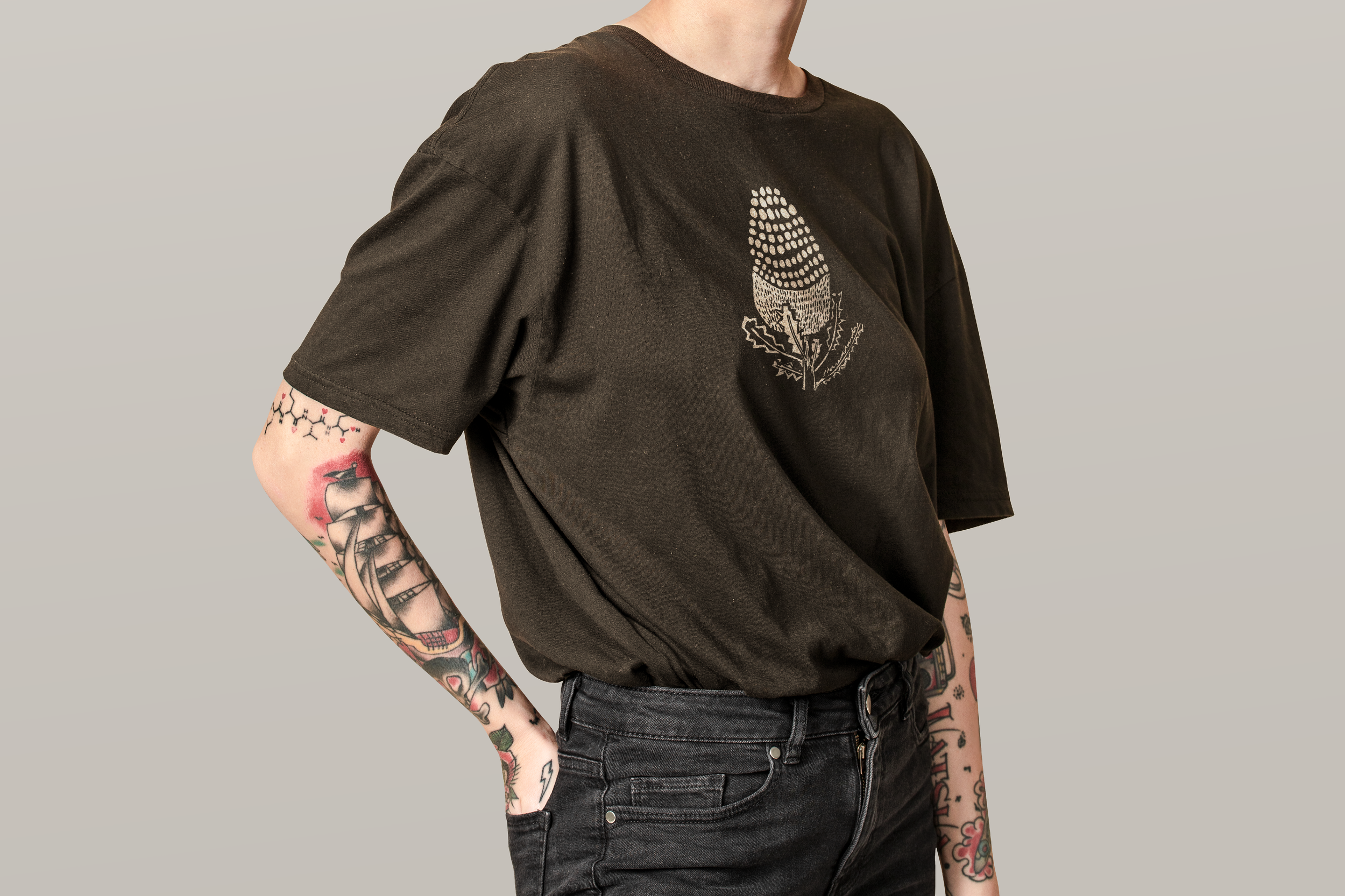 Created for a TAFE assignment, this project involved designing a mono-coloured illustration based on organic plant or animal life, then transferring the design to a stencil medium for printing.